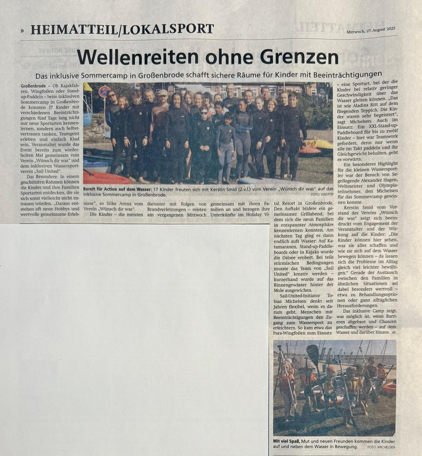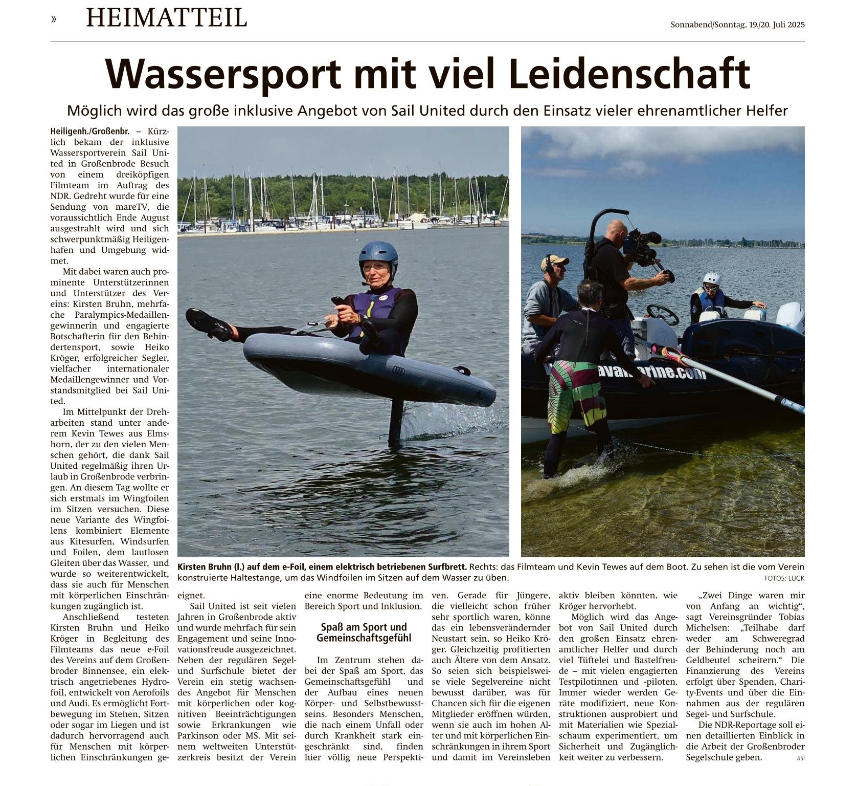 Die vielfältigen Möglichkeiten des inklusiven Wassersports sind aber immer noch so wenig bekannt und verbreitet, dass die Medienarbeit bei Sail United großgeschrieben wird. Dafür sind im Team zwei Kamera-Profis, die unsere Arbeit mit Videos und Footage-Material für Medien dokumentieren.